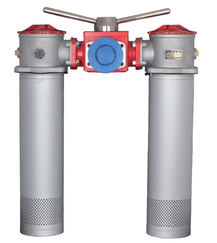 當(dāng)一只過濾器的濾芯堵塞致使進出口壓差為0.35MPa時,發(fā)訊器發(fā)訊,這時,轉(zhuǎn)動換向閥,使備用濾油器工作,然后更換已堵塞的濾芯。