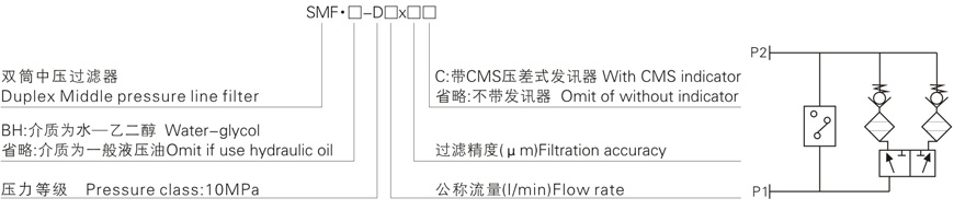 SMF系列雙筒中壓過濾器(新型)由兩只單筒過濾器,兩只單向閥,換向閥,發(fā)訊器等組成,它可在系列在不停機(jī)的狀況下更換濾芯,適用于連續(xù)工作的中低壓液壓系列。